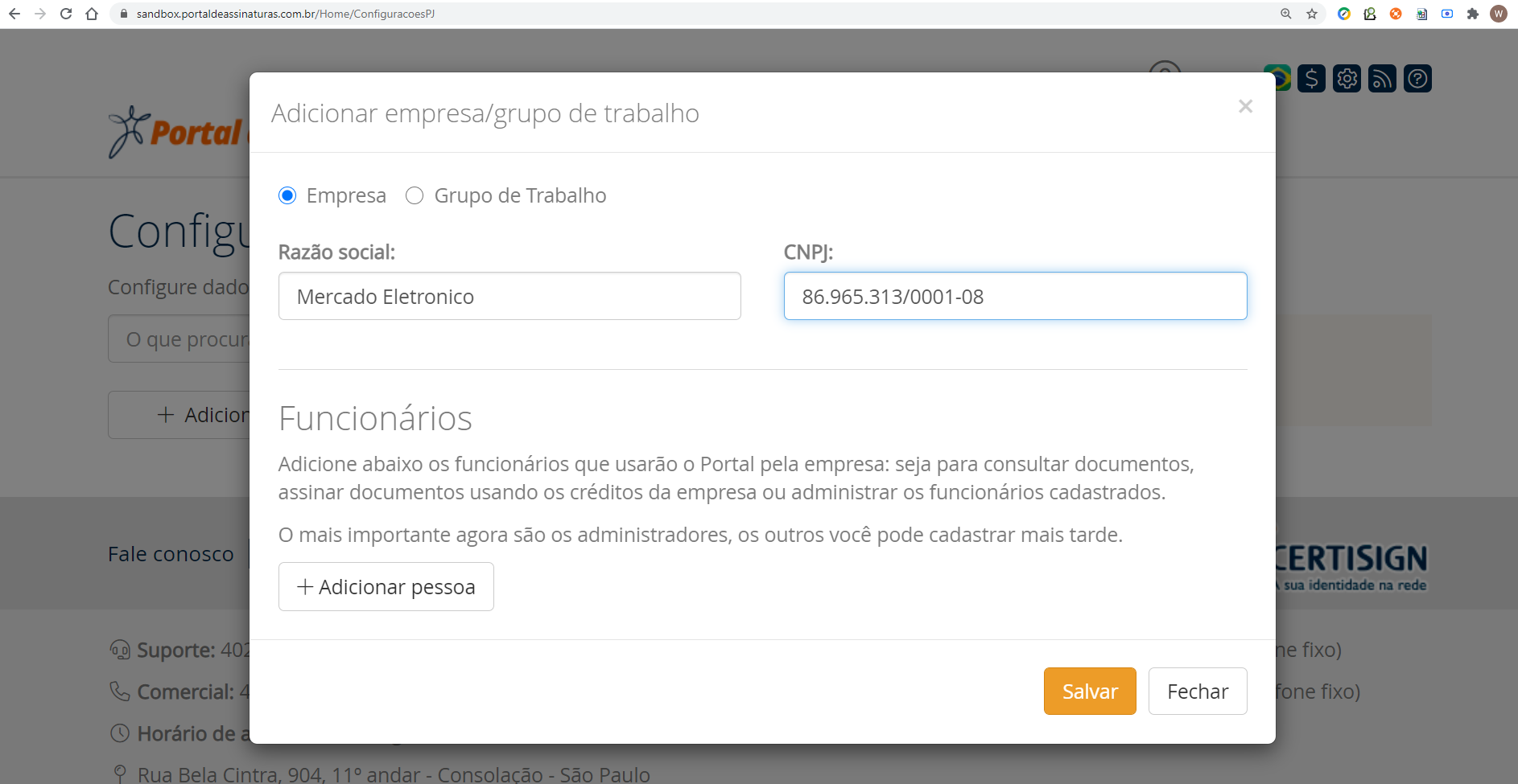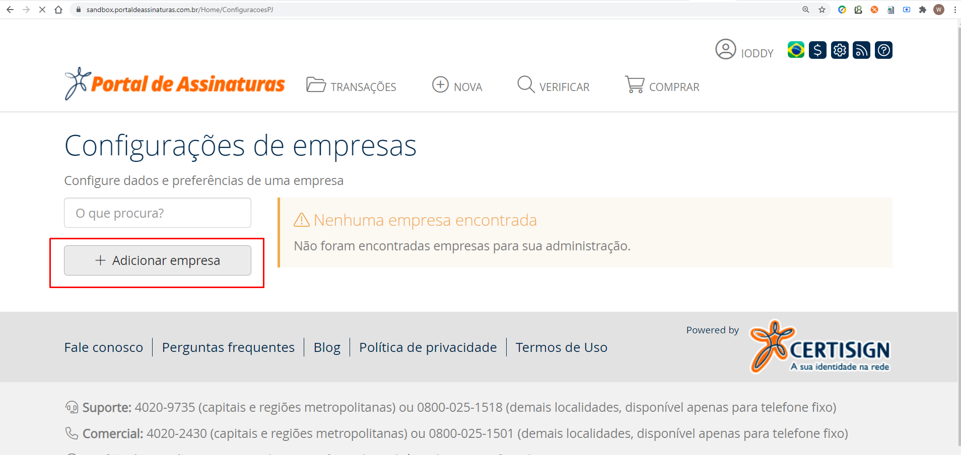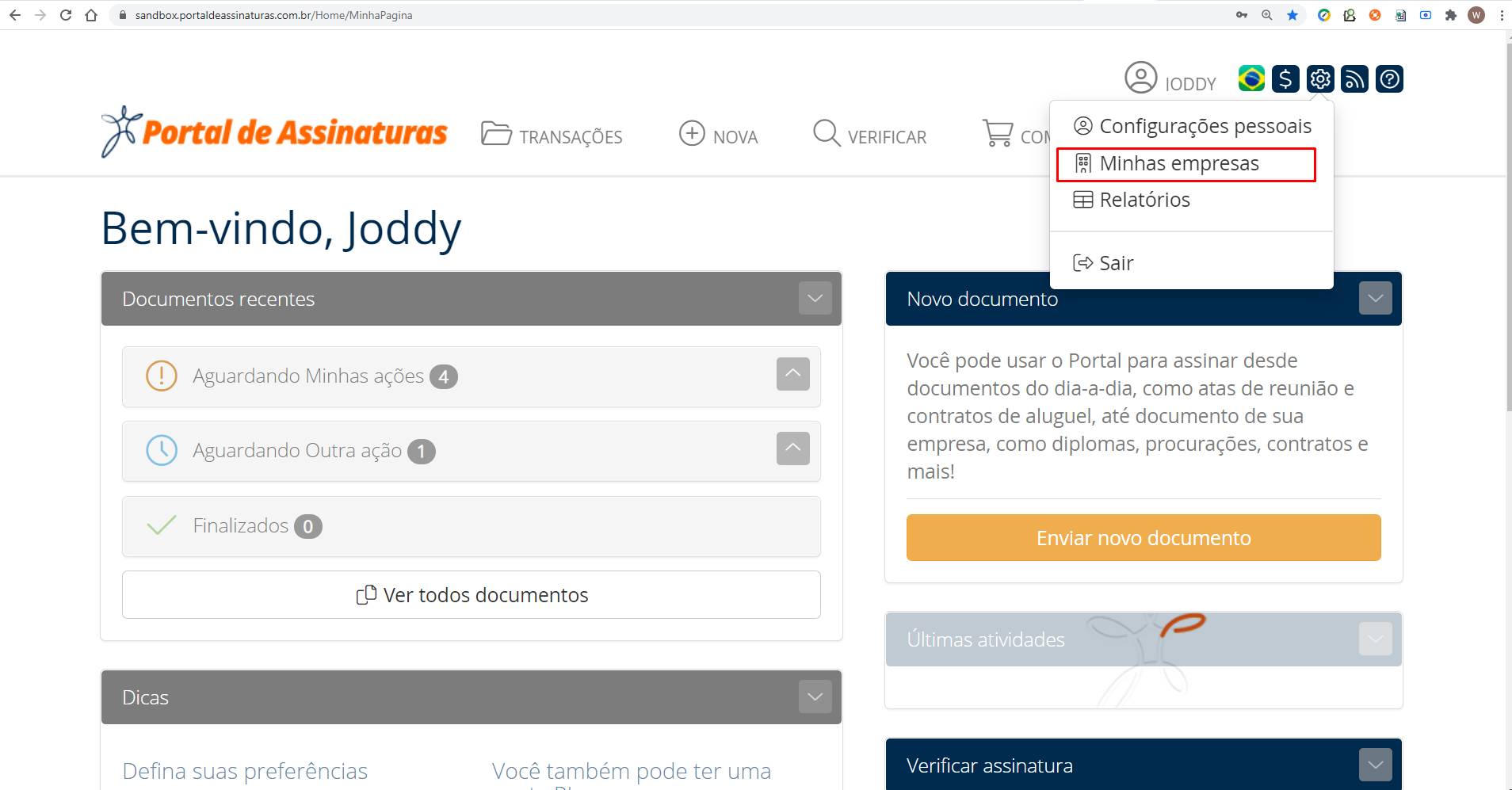 To set up a company, enter the menu Minhas empresas Minhas empresas