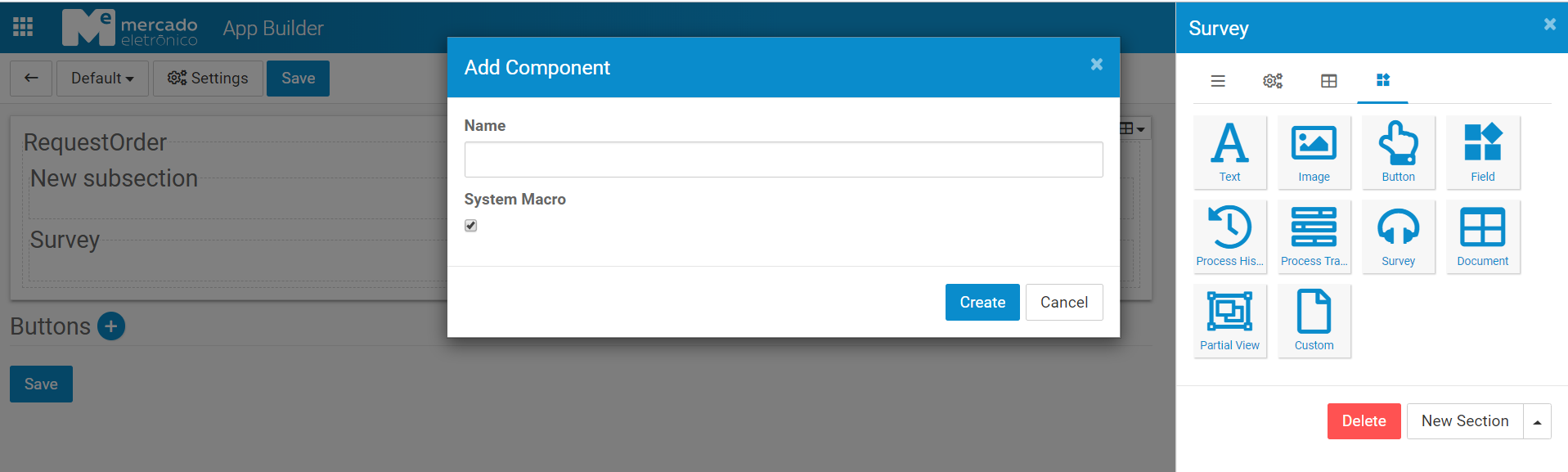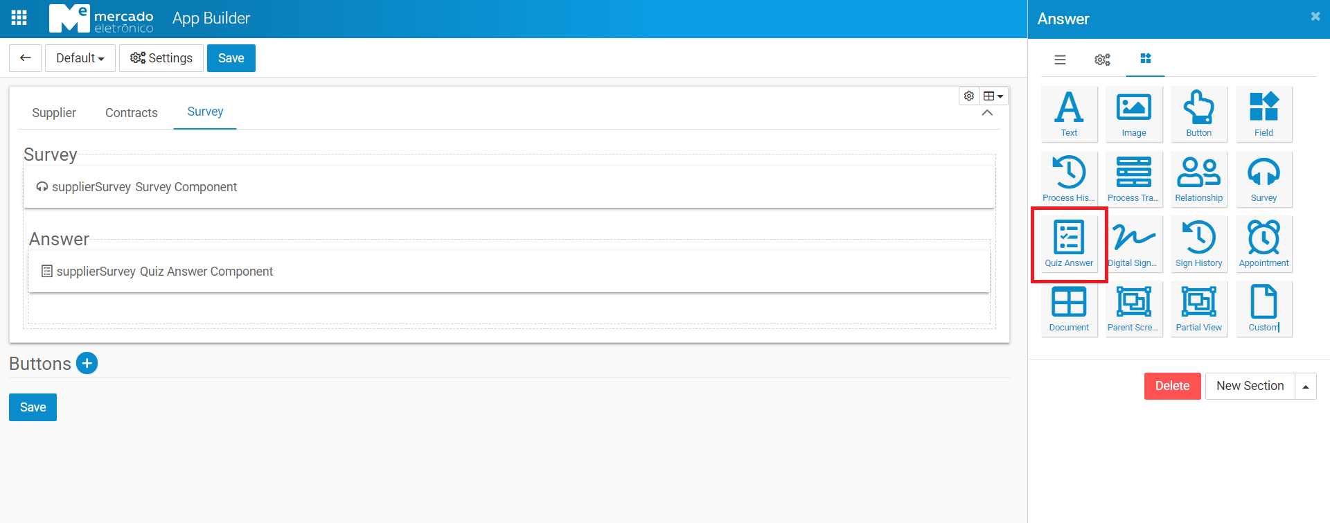 First, create a survey application to integrate with the appBuilder