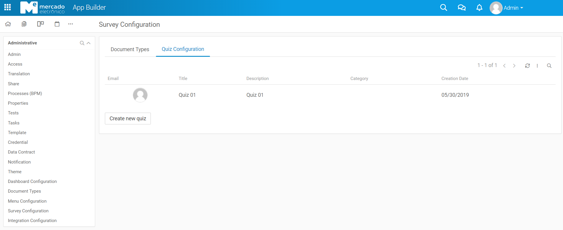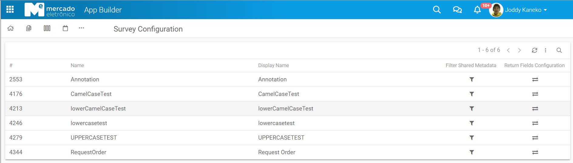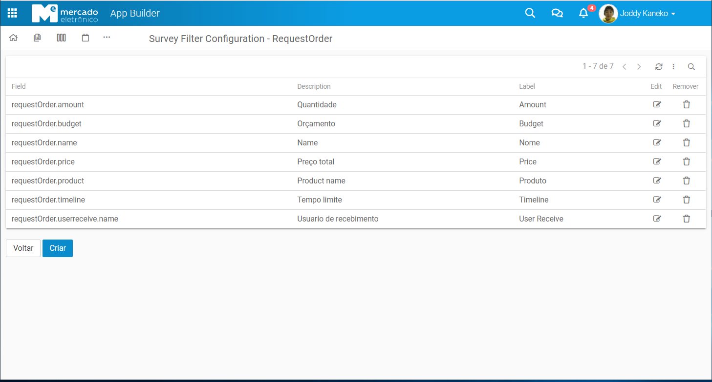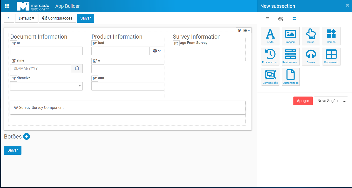 In the Grid of the survey configuration displays the list of all documents included in the appBuilder.