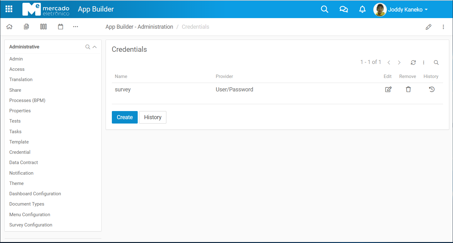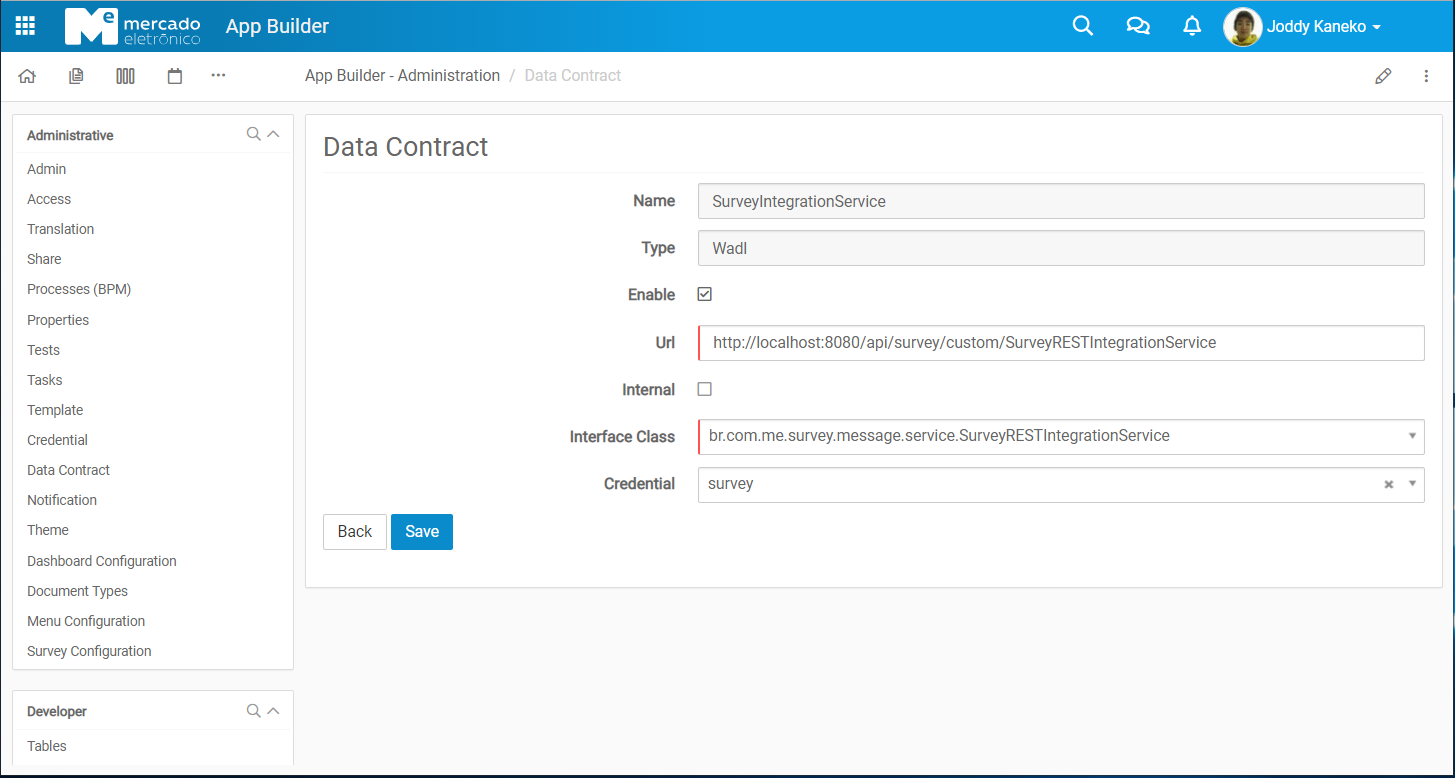 In AppBuilder create credential to integrate with Survey App.