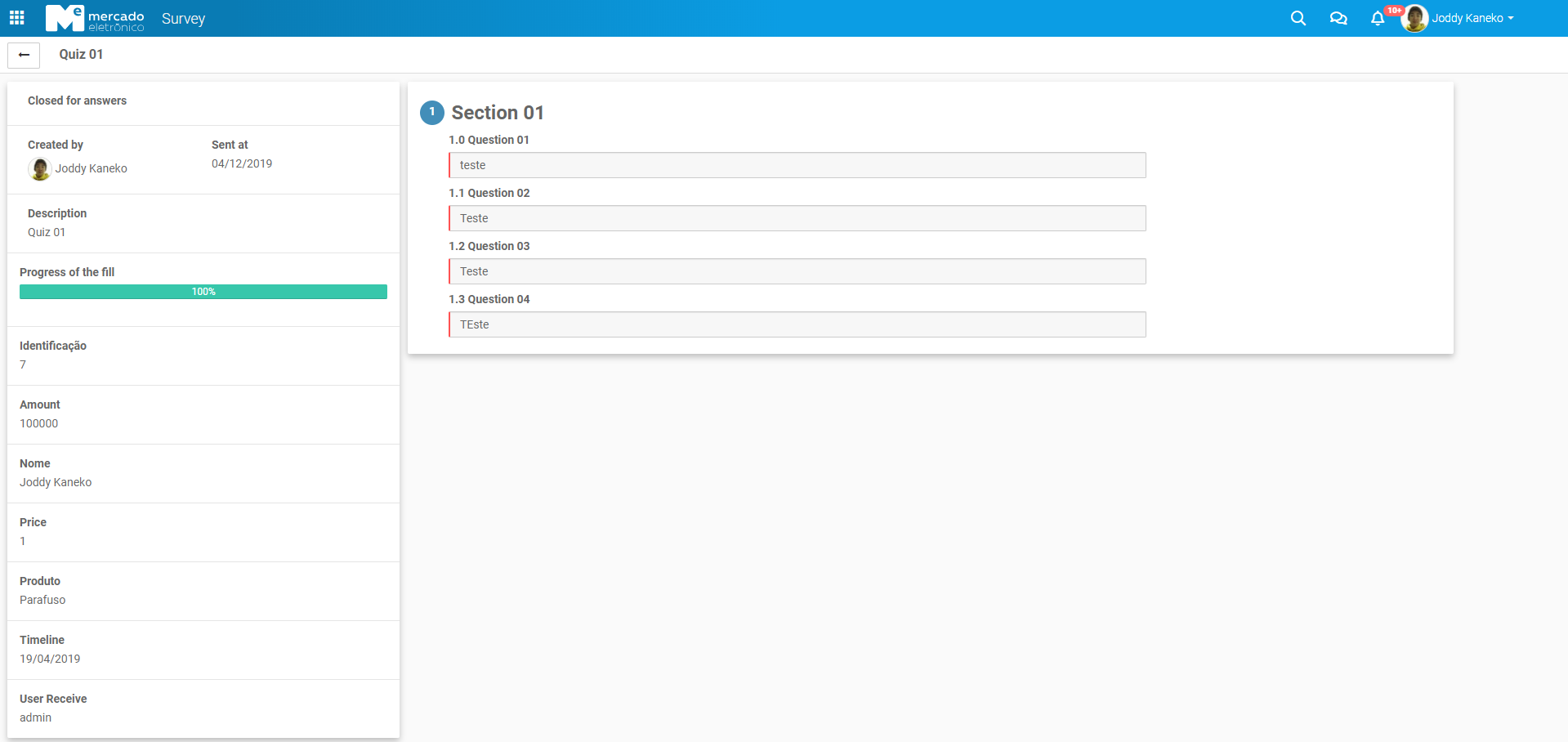 Quiz Field: To create a quiz template, a tab(Quiz Configuration) was created in the survey configuration.