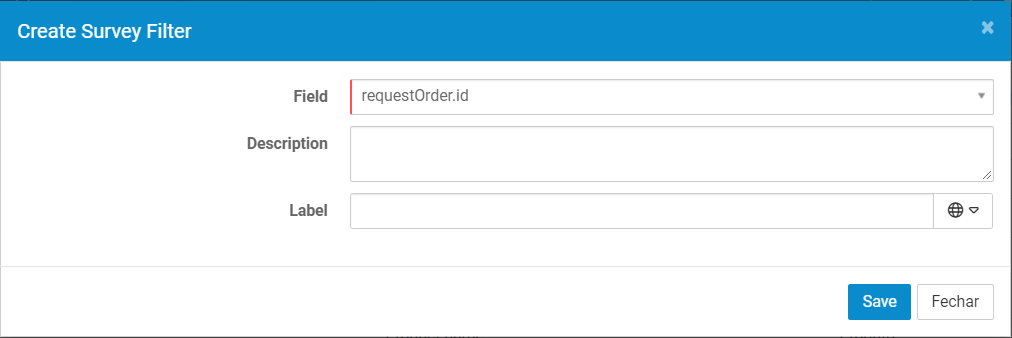 - To create the configuration that will be sent to the survey choose the document Field and fill Description and Label(Translatable)